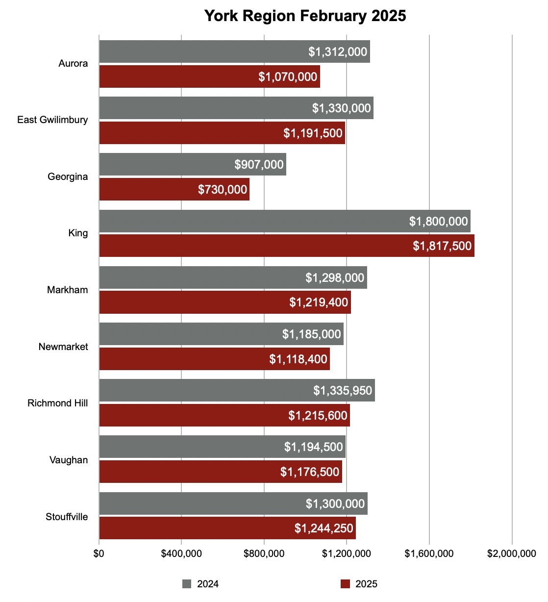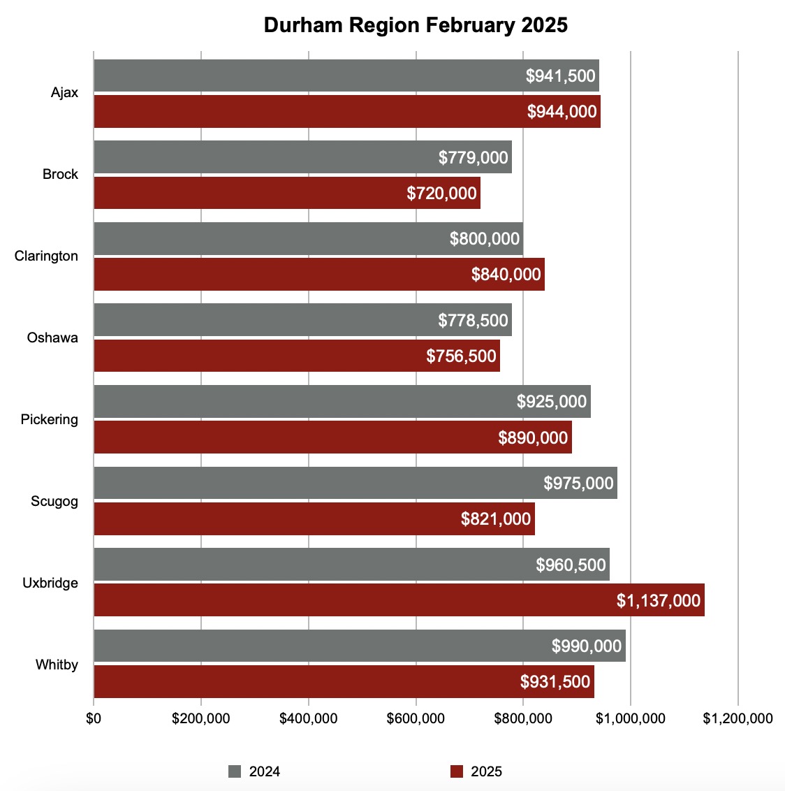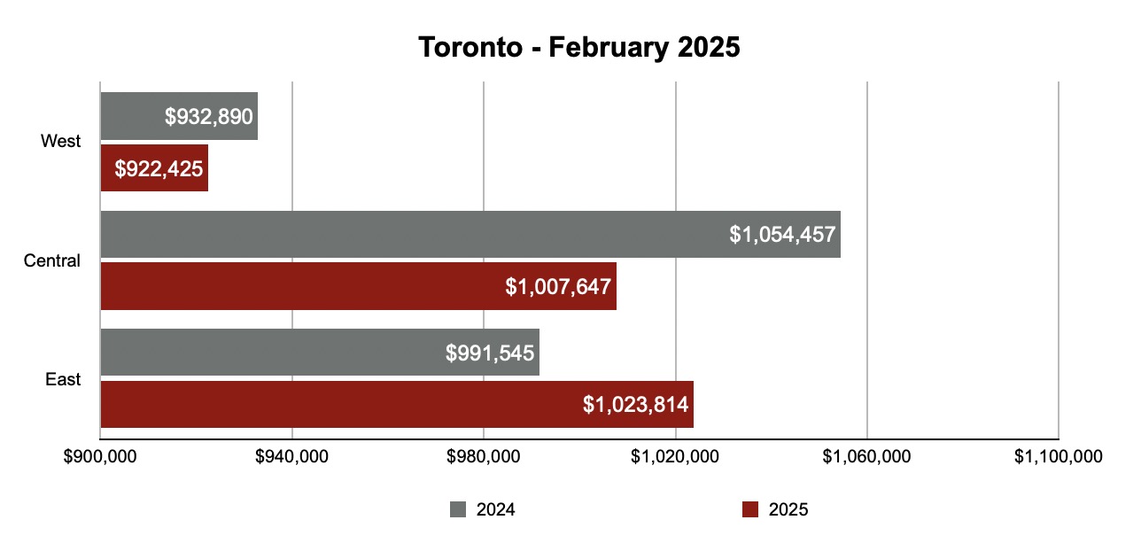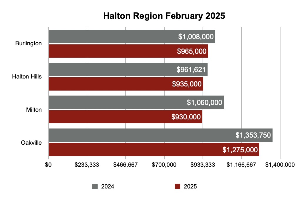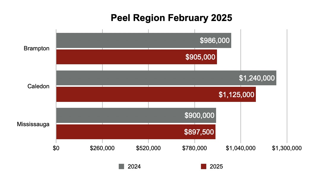 Following are the actual sales numbers in February 2025 in Greater Toronto Area’s major cities. Click the images below to zoom in: