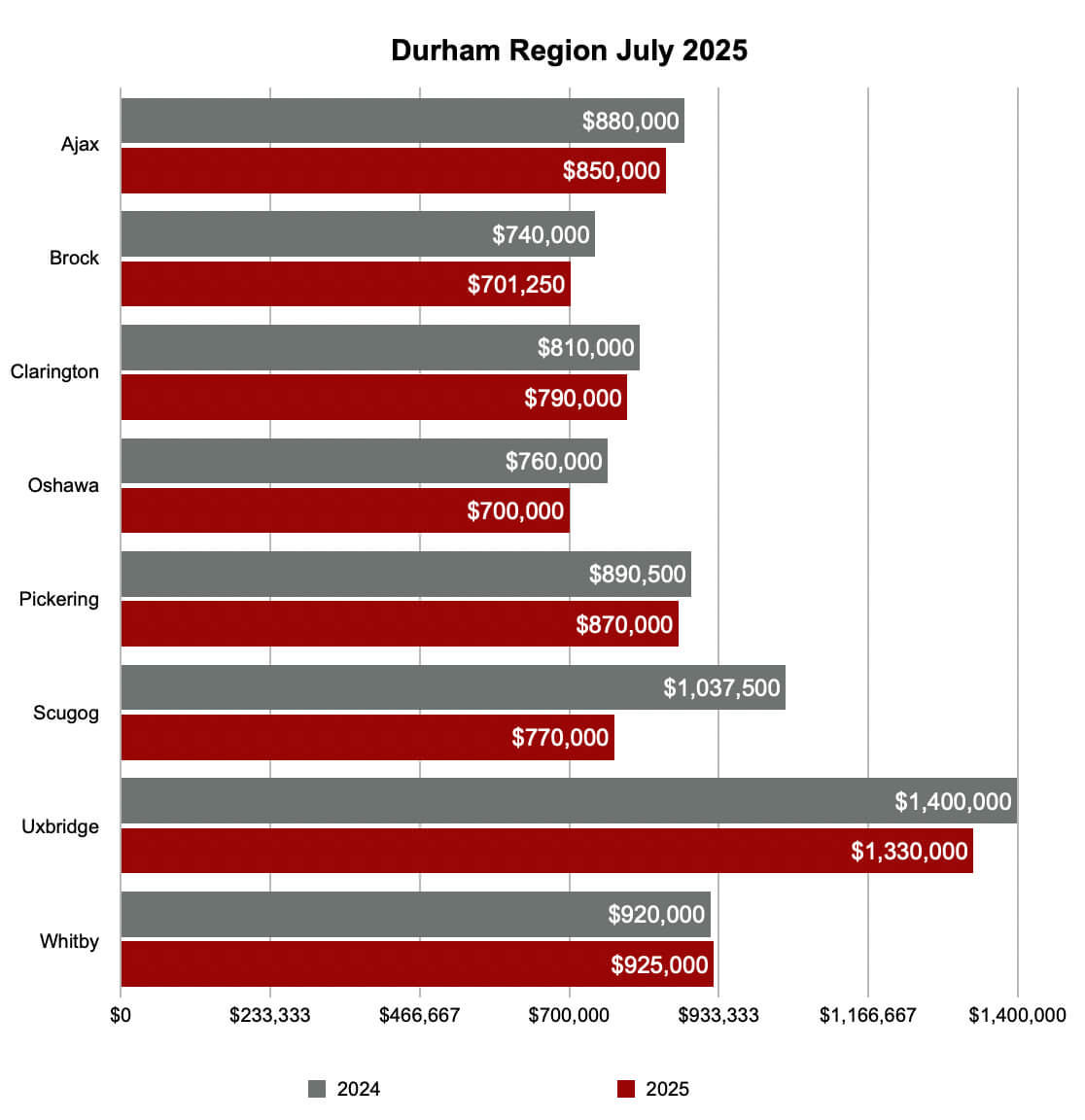 Following are the actual sales numbers in Greater Toronto Area’s major cities. Click the images below to zoom in: